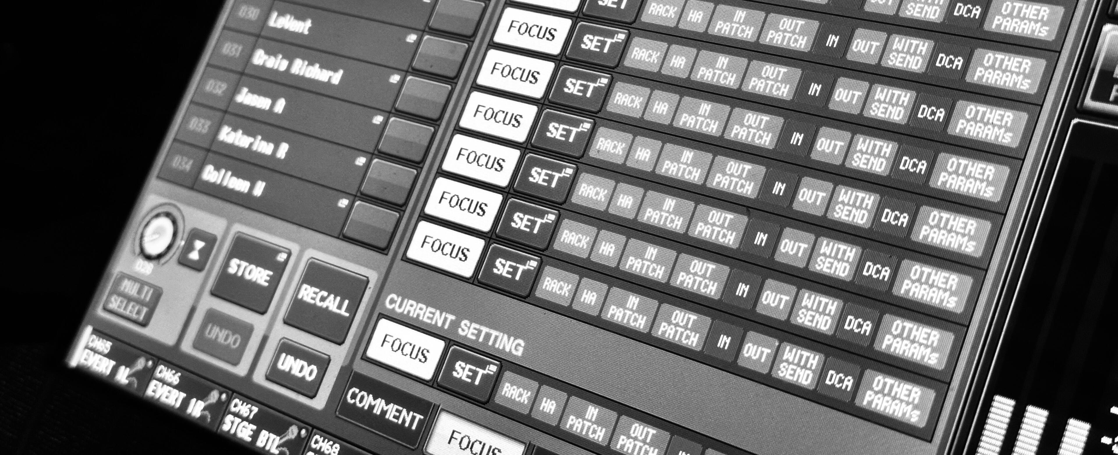 • DiGiCo, Yamaha, Avid, Midas: full console setup, snapshots, routing, FX programming